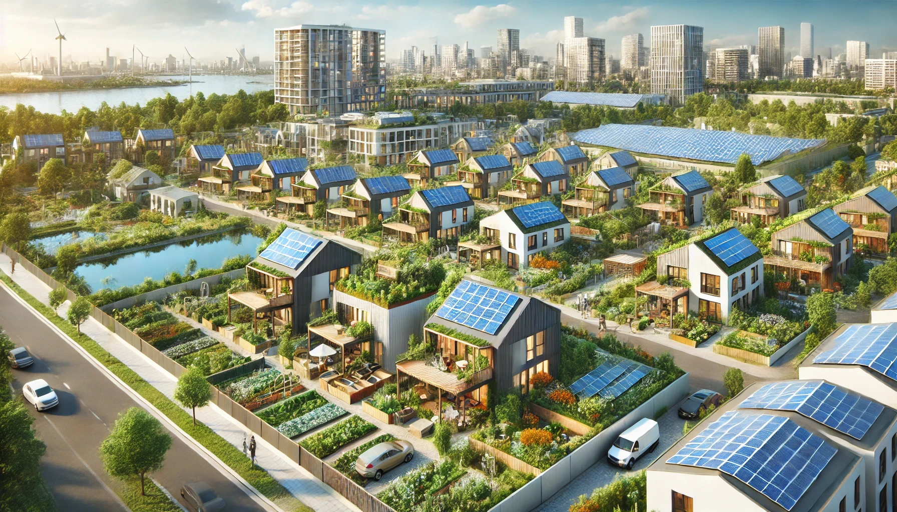 A green villa with a self-sustaining water filtration system and solar roofing.Why It Matters:
